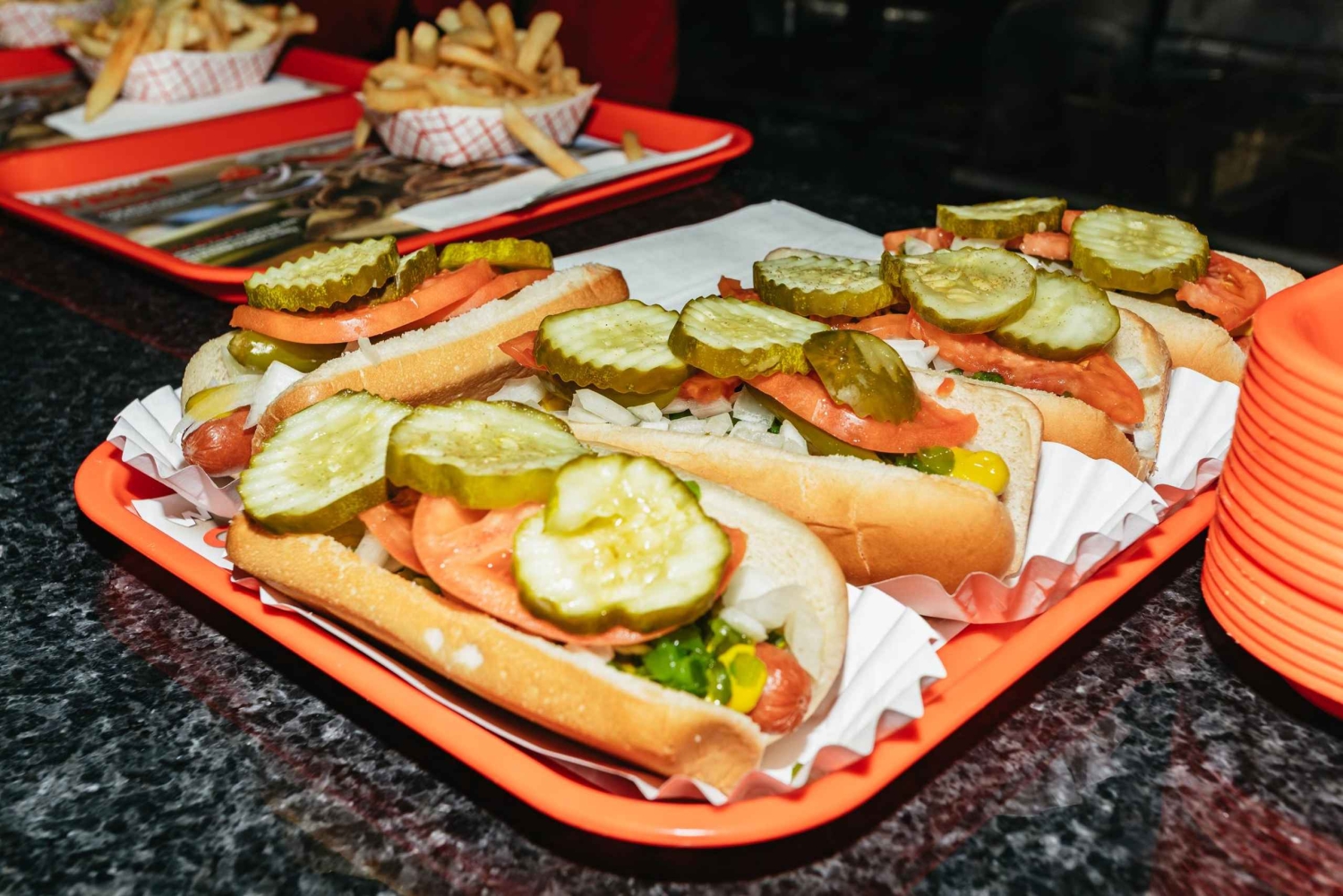 - Taste Chicago staples like juicy steak, hot dogs, and Chicago deep dish pizza