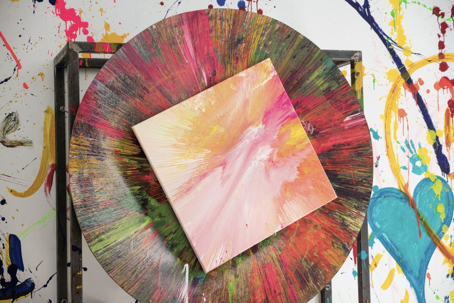 - Create a unique, eye-catching abstract masterpiece on a spinning canvas