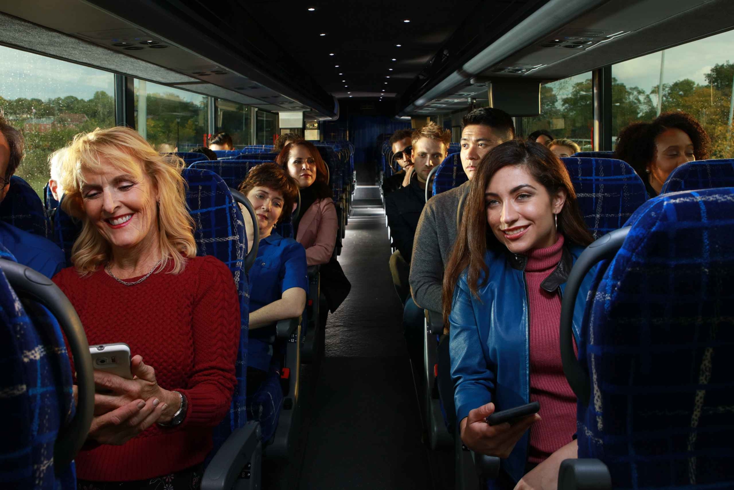 - Chaque bus est équipé de sièges inclinables, d'un système de climatisation et de toilettes.